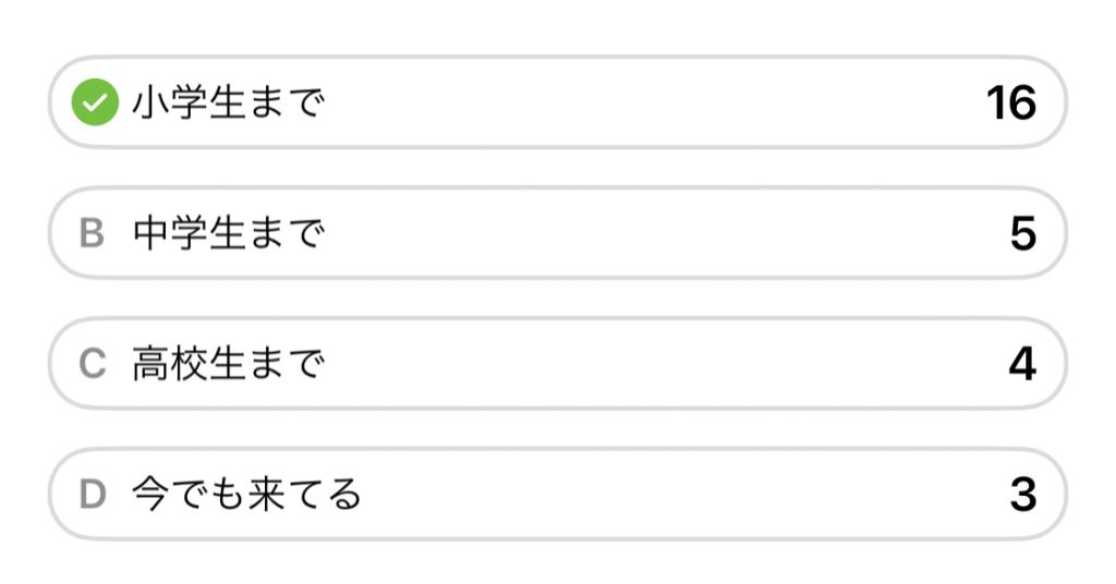 こんな感じの結果になりました!わたしの周りの友人も多いので、「今でも来てるの!?」ってなりましたが、きっとその子は毎年めちゃくちゃいい子なんでしょうね…。(羨ましい)