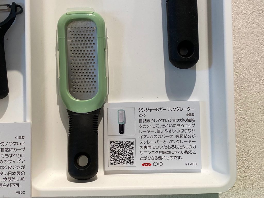 これ!これこれぇ!!!生姜やガーリックみたいな目の粗い繊維質のものを擦りおろせるグレーター(グレーター)。自力でやるとかなり手間なんですけど、これがあったら楽々。スクレーバー(ヘラの役割)もついているので、裏についたものも綺麗に取れちゃいます!