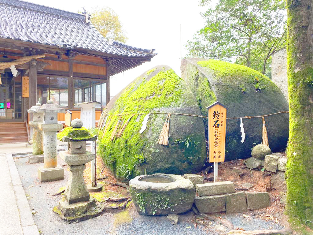 この岩は鈴岩(すずいわ)といって不老長寿の功徳がある、石長比売(いわながひめ)という神様が宿っているそう。割れた岩が『陽石(男石)』『陰石(女石)』と呼ばれていることから『縁結び』のご利益満点。